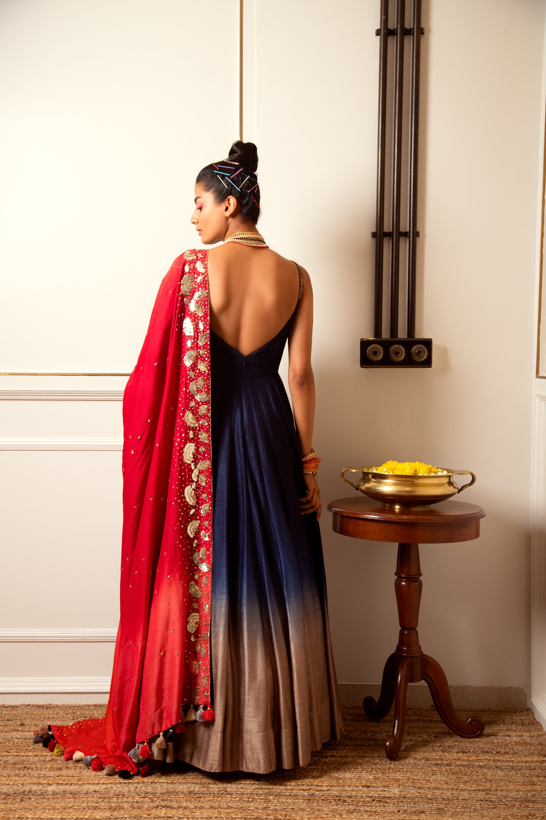 It can be even used as wrap around odhani on a lehenga or a floor-length dress.